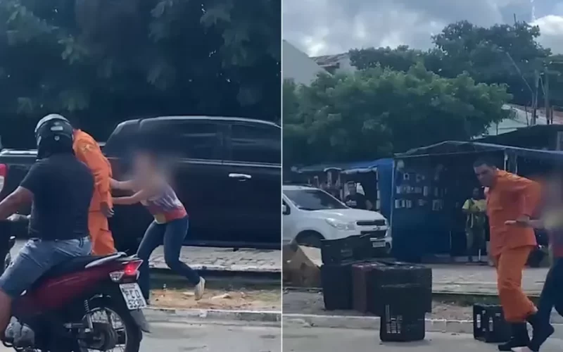 Um bombeiro militar de Alagoas foi flagrado agredindo uma mulher na Avenida Zeferino Galvão, no Centro da cidade de Arcoverde, no Sertão de Pernambuco. O vídeo foi feito por testemunhas da agressão que registraram o homem arrastando a vítima à força pelo braço enquanto ela grita pedindo socorro. (Assista acima)