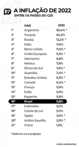 Brasil tem a sexta menor inflação entre os países do G-20 em 2022
