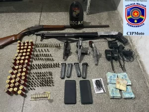 “Com o grupo foram apreendidos três revólveres calibre .38, uma pistola calibre .380, uma espingarda calibre 12 de cano reduzido e munições”, disse a PM.