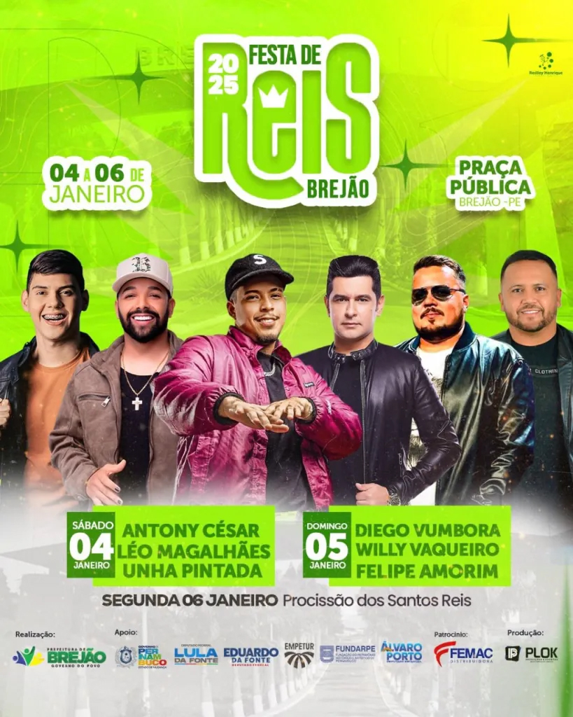 “Queremos proporcionar momentos de alegria e celebração para nossa gente. A Festa de Reis é uma tradição de Brejão e será, mais uma vez, um marco de diversão e fé para todos”, afirmou Saulo Maruim, prefeito do município.