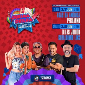 Neste sábado (18), o encarregado de puxar a Queimadrilha é o considerado Rei das drilhas, o cantor caruaruense Elifas Júnior, que vai animar o público pelas ruas de Queimadas, em seguida no palco, terá show com Geraldinho Lins.