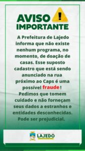 A prefeitura de Lajedo no agreste de Pernambuco emitiu nota alertando a população sobre uma informação que vinha sendo divulgada na cidade a respeito de projeto habitacional para o povo.