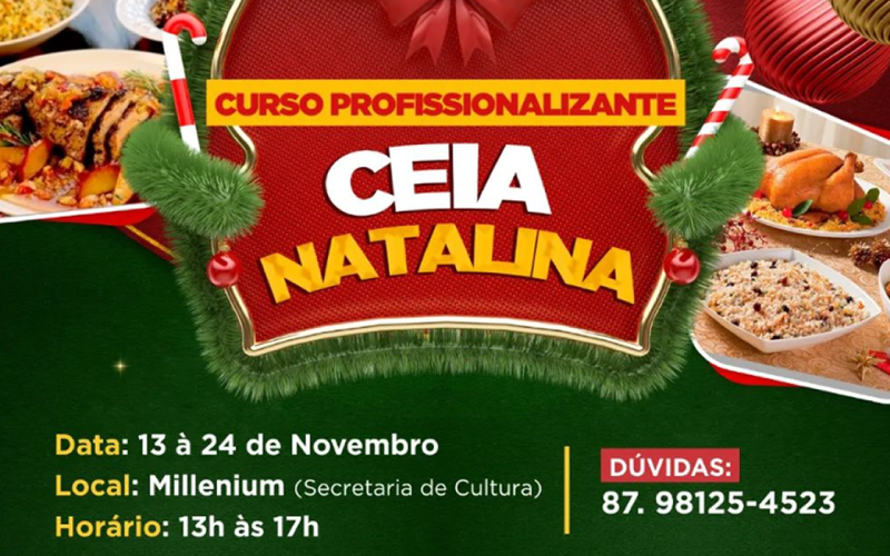 O curso abrange uma variedade de tópicos essenciais, incluindo procedimentos padrões de higiene operacional, princípios fundamentais para manipuladores de alimentos, identificação de riscos na produção de alimentos, técnicas de armazenamento e conservação de produtos alimentícios, métodos de cocção, além de apresentar produtos, equipamentos e utensílios de cozinha utilizados na preparação de pratos tradicionais da ceia natalina. Entre os pratos ensinados estão o Peru de Natal, Tender, Lombo de Porco Recheado, Torta de Bacalhau, Farofa de Festa, Salpicão, Sino de Natal, Arroz Natalino, Torta de Frutas com Chocolate, Torta de Nozes, Bolo de Natal, Panetone, Mousse de Festa, Pavê Floresta Negra, Pêras ao Vinho, Coquetel de Natal com Gelo e Frutas, além de técnicas de decoração com legumes e frutas.